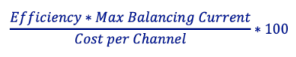 Higher is better for efficiency and maximum balancing current, so they are in the numerator of the fraction.
